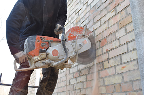 Wall sawing is used when precise openings are required in vertical or steep concrete surfaces — such as new doors, overhead doors, vents, or window enlargements. With hydraulic wall sawing, we can cut up to 17″ deep (and up to 34″ where both sides are accessible).